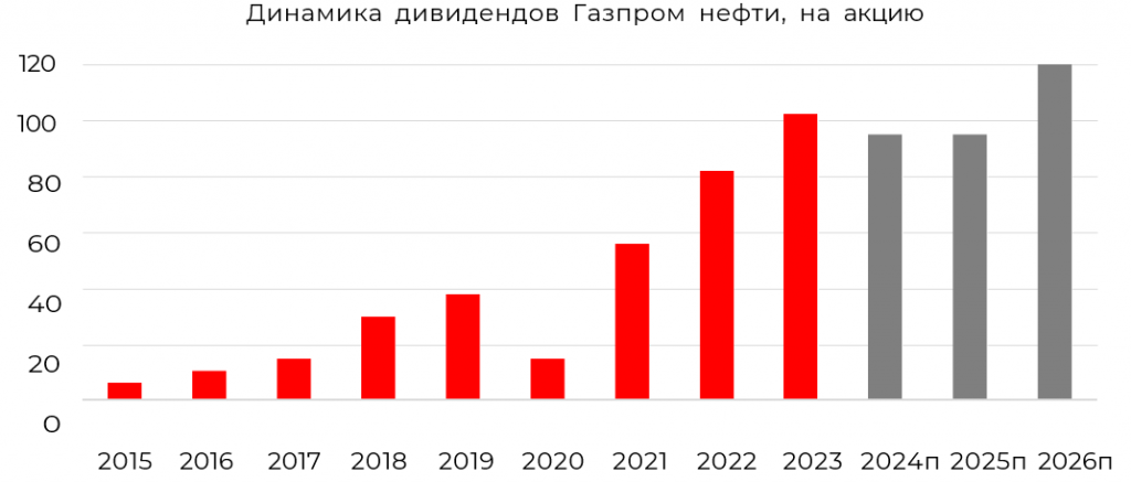 Главным драйвером роста может стать неожиданно большой размер дивидендов в 2024 году. Мы ожидаем, что в 2024-2025 годах компания направит на дивиденды 70% чистой прибыли, а в 2026 году — 75%. Но Татнефть и раньше платила больше. У компании всё хорошо с финансами, и капитальные затраты в 2024 году снизились, поэтому дивиденды могут быть выше ожиданий, особенно если компания решит выплачивать 90% прибыли.